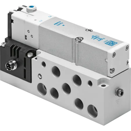 3/2 распределитель с электромагнитным управлением и пилотным каскадом.