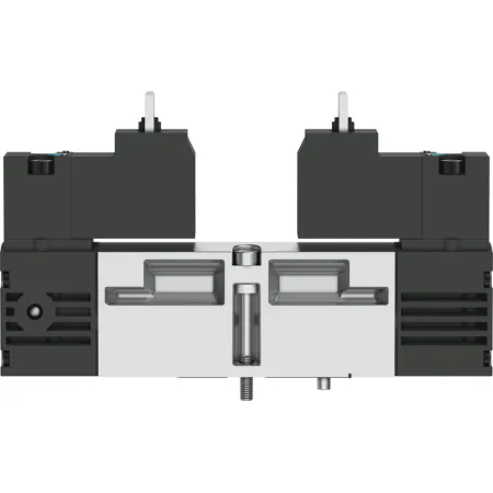 3/2 распределитель с электромагнитным управлением и пилотным каскадом.