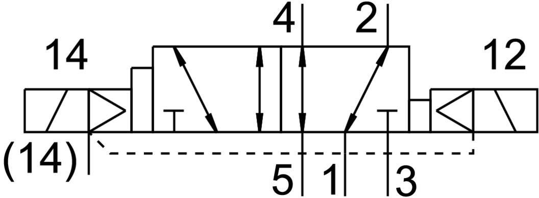 3/2 распределитель с электромагнитным управлением и пилотным каскадом.