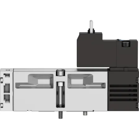 3/2 распределитель с электромагнитным управлением и пилотным каскадом.