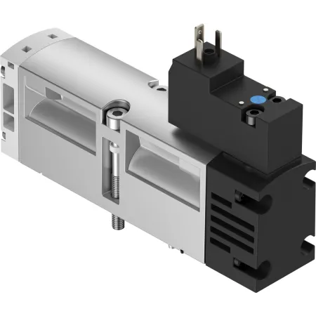 3/2 распределитель с электромагнитным управлением и пилотным каскадом.
