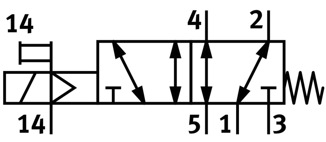 3/2 распределитель с электромагнитным управлением и пилотным каскадом.