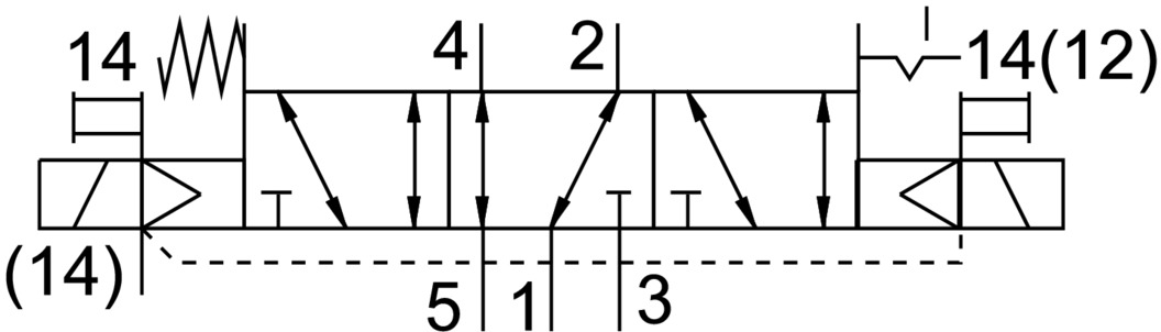 3/2 распределитель с электромагнитным управлением и пилотным каскадом.