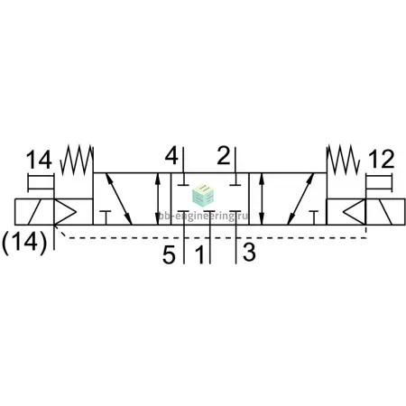 3/2 распределитель с электромагнитным управлением и пилотным каскадом.