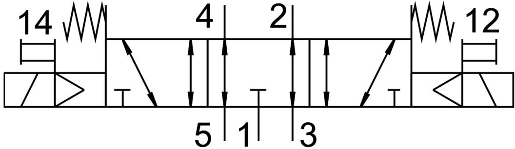3/2 распределитель с электромагнитным управлением и пилотным каскадом.