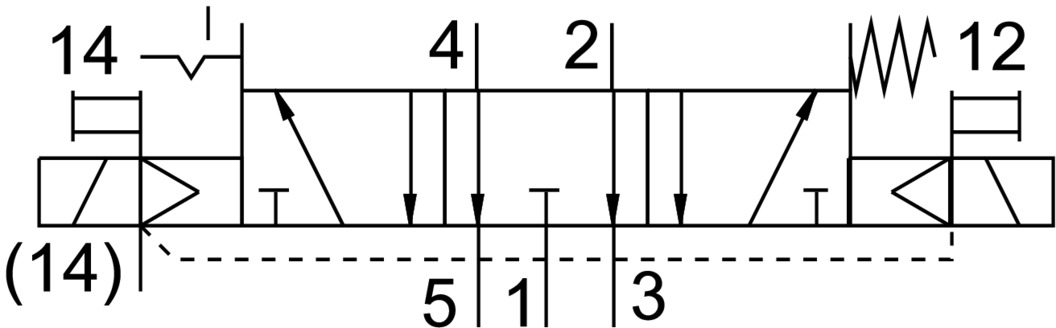 3/2 распределитель с электромагнитным управлением и пилотным каскадом.