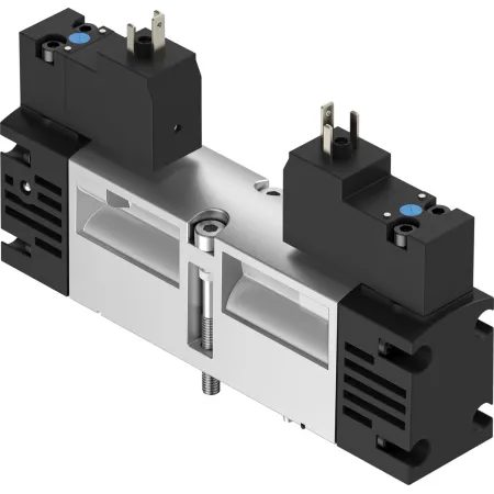 3/2 распределитель с электромагнитным управлением и пилотным каскадом.