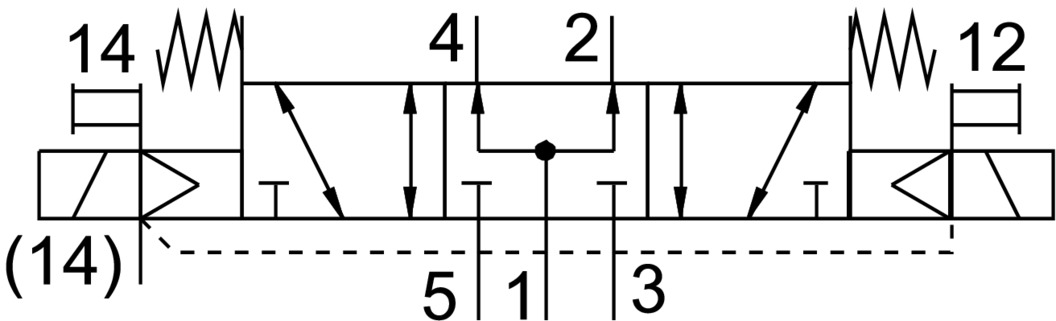 3/2 распределитель с электромагнитным управлением и пилотным каскадом.