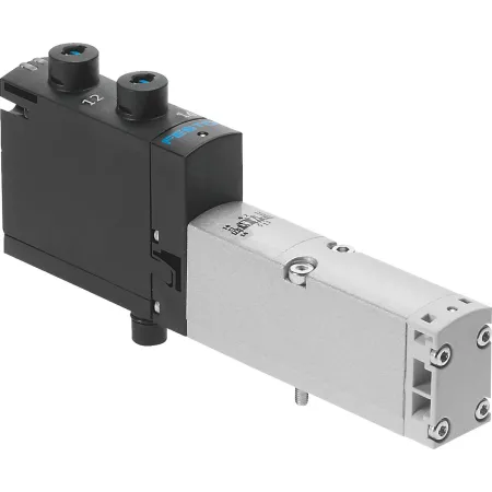 3/2 распределитель с электромагнитным управлением и пилотным каскадом.