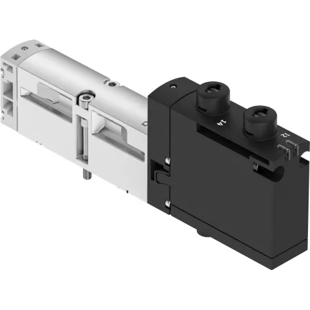 3/2 распределитель с электромагнитным управлением и пилотным каскадом.