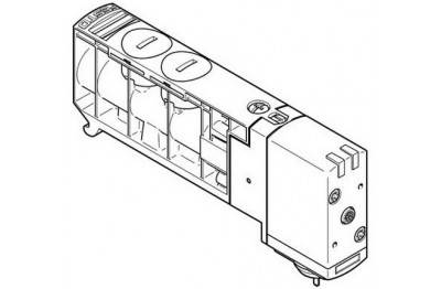 3/2 распределитель с электромагнитным управлением и пилотным каскадом.