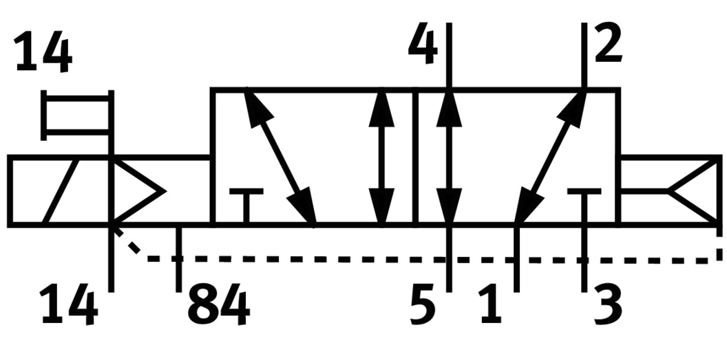 3/2 распределитель с электромагнитным управлением и пилотным каскадом.
