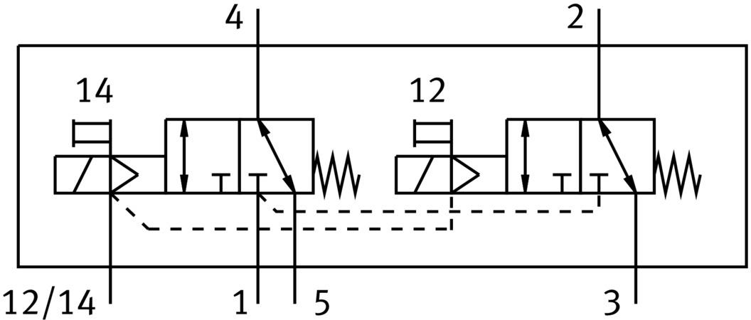 3/2 распределитель с электромагнитным управлением и пилотным каскадом.