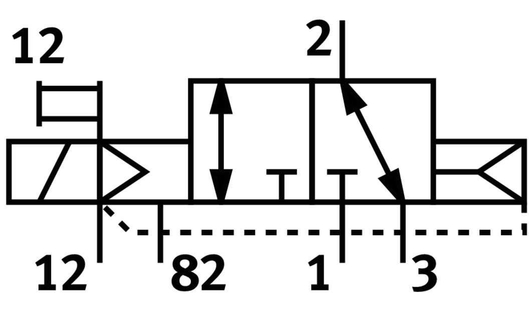 3/2 распределитель с электромагнитным управлением и пилотным каскадом.