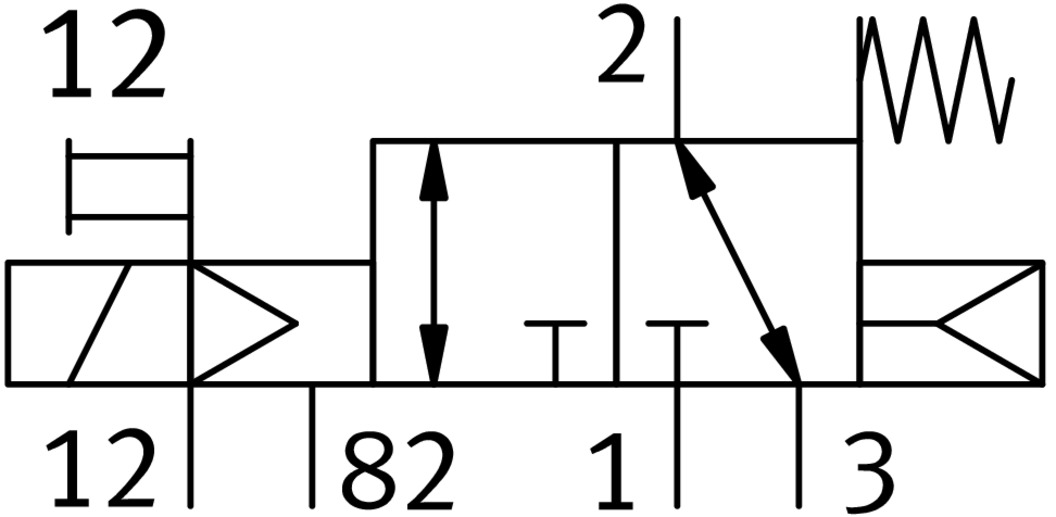 3/2 распределитель прямого действия с электромагнитным управлением.