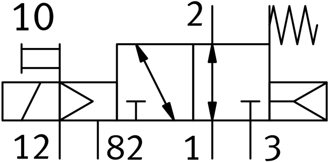 3/2 распределитель прямого действия с электромагнитным управлением.