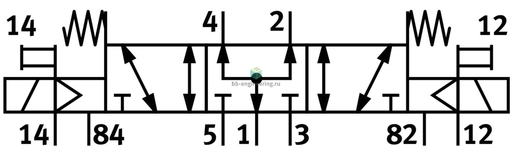 3/2 распределитель с электромагнитным управлением и пилотным каскадом.