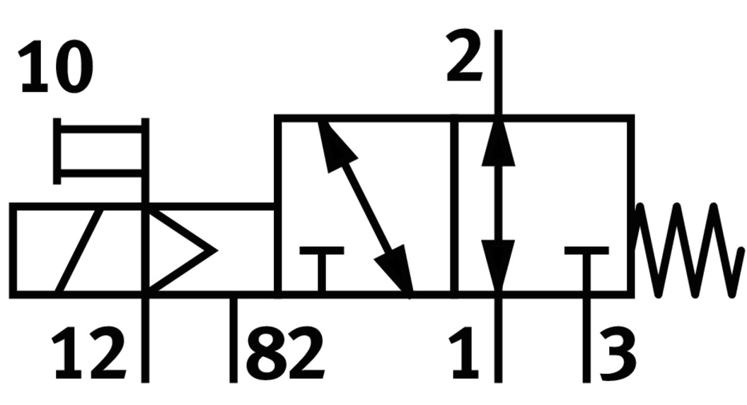 3/2 распределитель с электромагнитным управлением и пилотным каскадом.