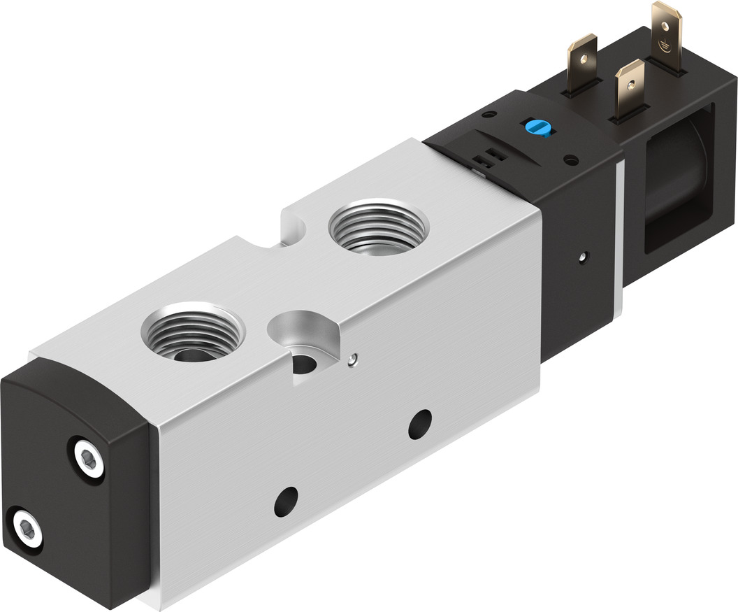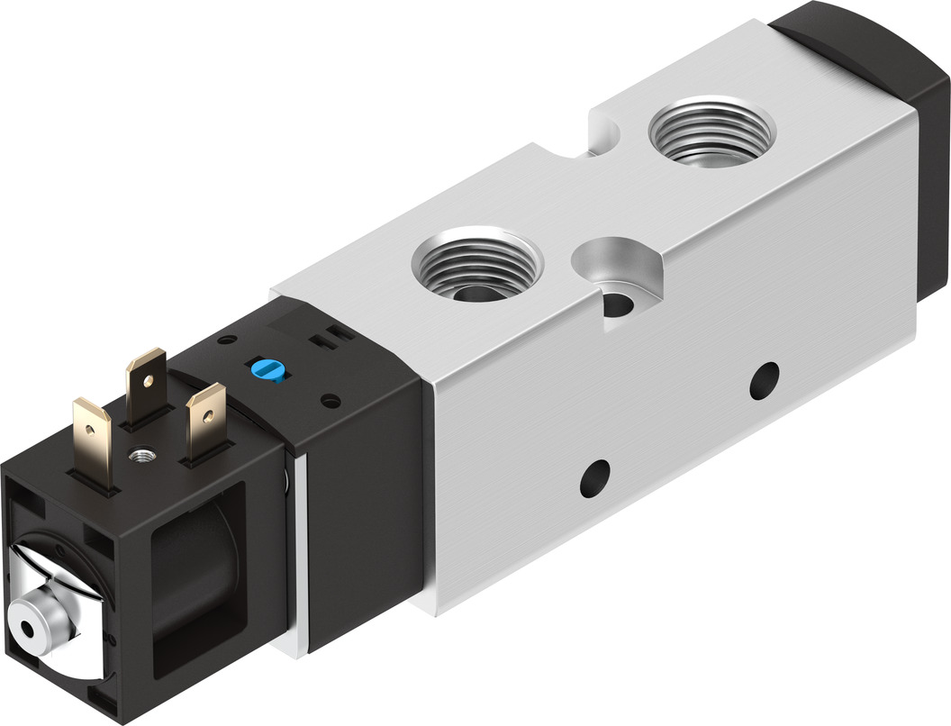 3/2 распределитель с электромагнитным управлением и пилотным каскадом.