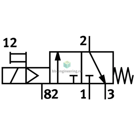 3/2 распределитель прямого действия с электромагнитным управлением.