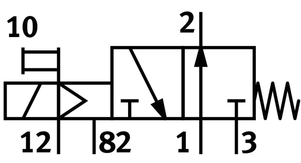 3/2 распределитель с электромагнитным управлением и пилотным каскадом.