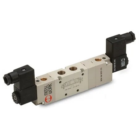 3/2 распределитель с электромагнитным управлением и пилотным каскадом.