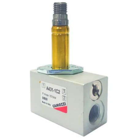 Распределители непрямого действия имеют в своей конструкции пилотный каскад усиления, который для простоты чаще называют просто пилотом. Задача исполнительного элемента в данном случае состоит не в смещении самого запорного элемента основного клапана, а, фактически, в открытии небольшого воздушного канала. Смещение самого запорного элемента происходит за счет давления, попадающего к нему через этот открывающийся канал.