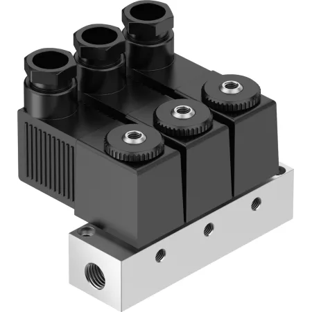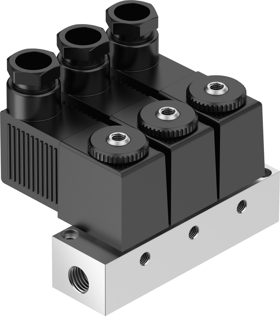 3/2 распределитель с электромагнитным управлением и пилотным каскадом.