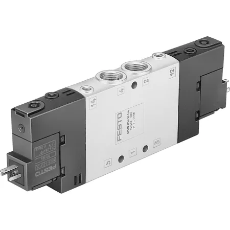 3/2 распределитель с электромагнитным управлением и пилотным каскадом.