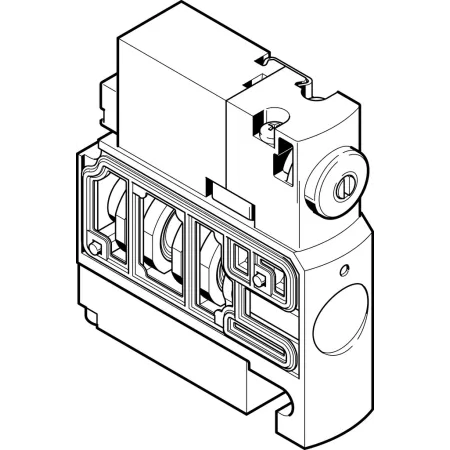 3/2 распределитель с электромагнитным управлением и пилотным каскадом.