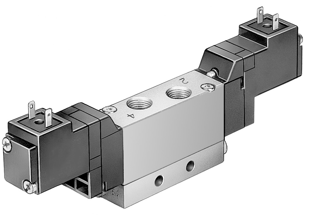 3/2 распределитель с электромагнитным управлением и пилотным каскадом.