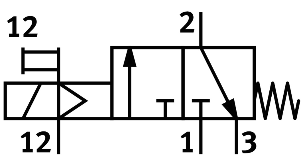 3/2 распределитель прямого действия с электромагнитным управлением.