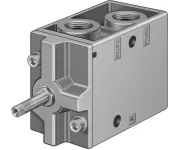 3/2 распределитель с электромагнитным управлением и пилотным каскадом.