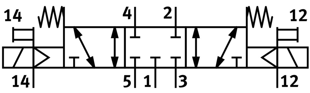 3/2 распределитель с электромагнитным управлением и пилотным каскадом.