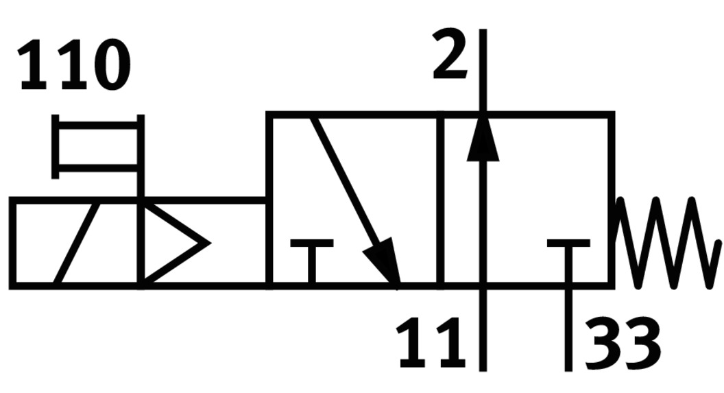 3/2 распределитель прямого действия с электромагнитным управлением.