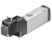 3/2 распределитель с электромагнитным управлением и пилотным каскадом.