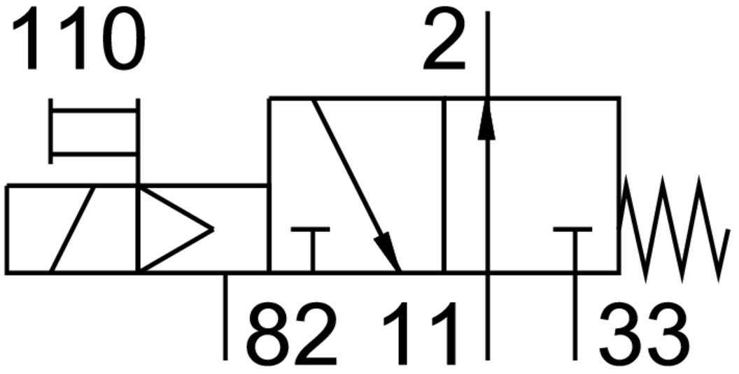3/2 распределитель с электромагнитным управлением и пилотным каскадом.