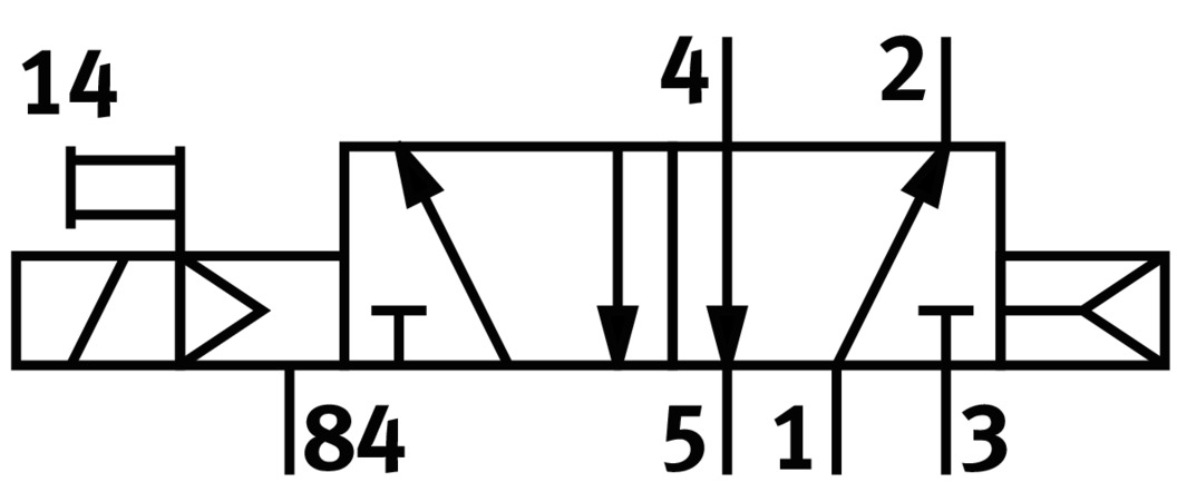 3/2 распределитель с электромагнитным управлением и пилотным каскадом.