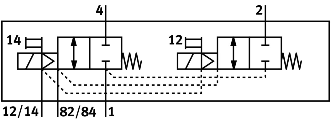 3/2 распределитель с электромагнитным управлением и пилотным каскадом.