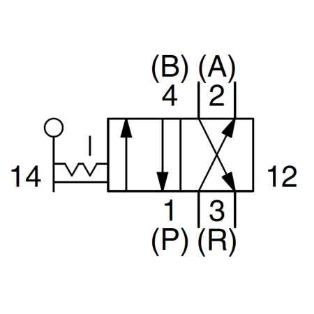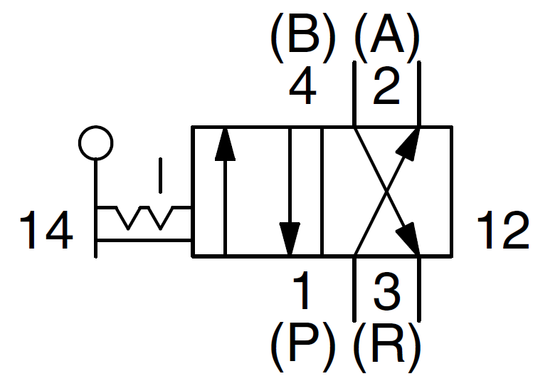3/2 распределитель с электромагнитным управлением и пилотным каскадом.
