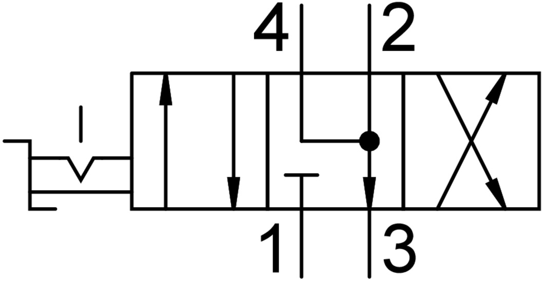3/2 распределитель с электромагнитным управлением и пилотным каскадом.