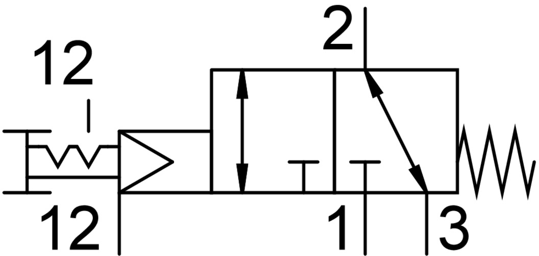 3/2 распределитель с электромагнитным управлением и пилотным каскадом.