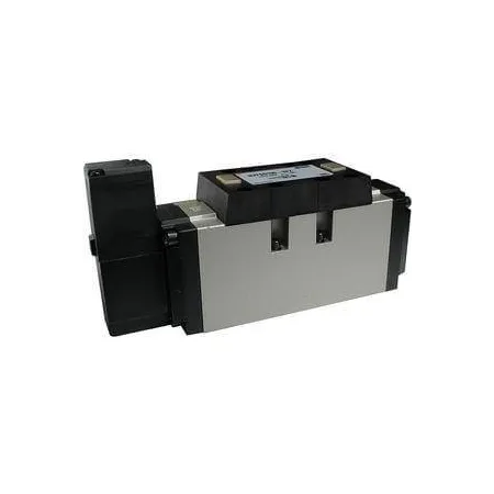 3/2 распределитель с электромагнитным управлением и пилотным каскадом.