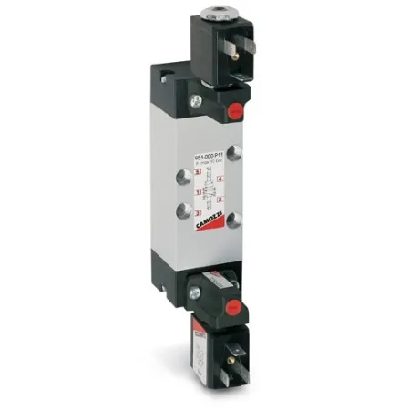 3/2 распределитель с электромагнитным управлением и пилотным каскадом.