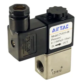 Функция клапана2/2 НЗ Тип управленияэлектрический Напряжение катушки220 V AC Электрическое подключениеразъём по DIN 43650 тип B industrial (11 мм) 3-пин ПодключениеG1/8 Корпуслатунь никелированная ПроизводительAirTAC