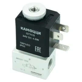 Функция клапана3/2 НЗ Тип управленияэлектрический Напряжение катушки24 V AC Стандартный номинальный расход120 Электрическое подключениеразъём по DIN 43650 тип A (18 мм) 3-пин ПодключениеG1/8 Корпуслатунь никелированная