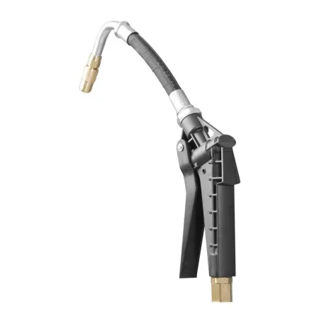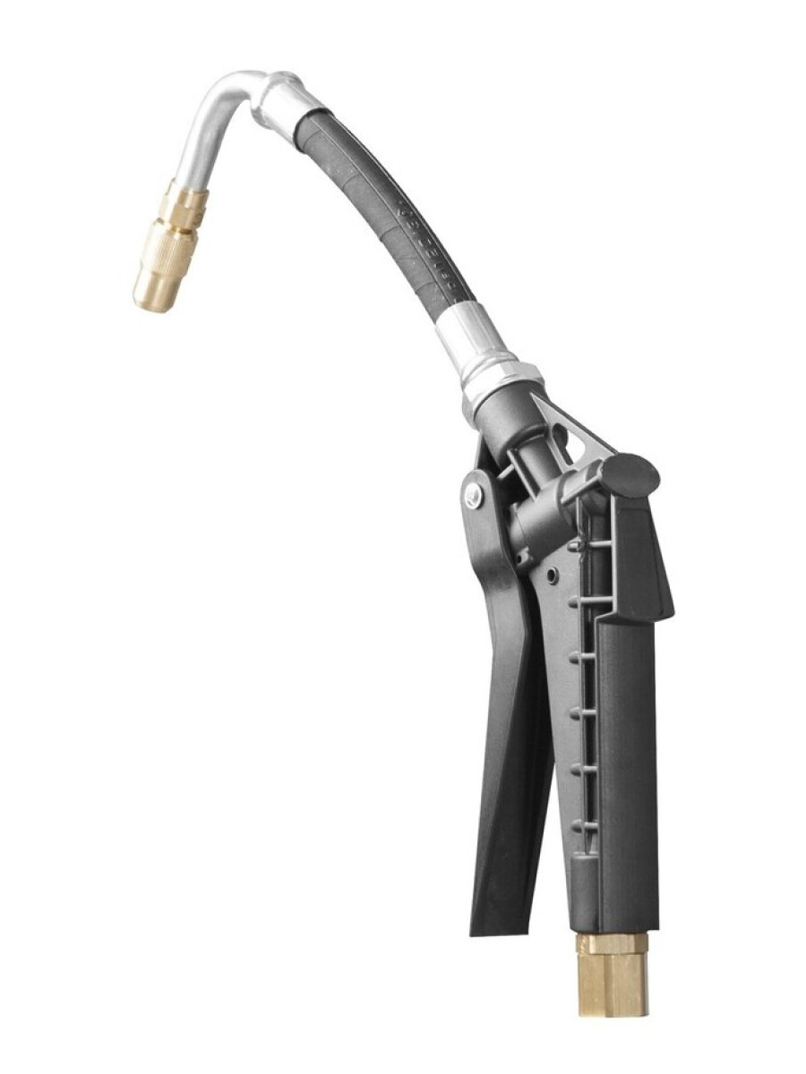 Раздаточный пистолет с упрочненным полиамидным корпусом и клапанным механизмом из нержавеющей стали для жидкости омывателя ветрового стекла, раствора гликоля (антифриз) и других жидкостей на водной основе. Оборудован латунным впускным шарниром и гибкой выпускной трубкой с наконечником 90 град. с четверть-оборотным открывающим/закрывающим безкапельным наконечником.