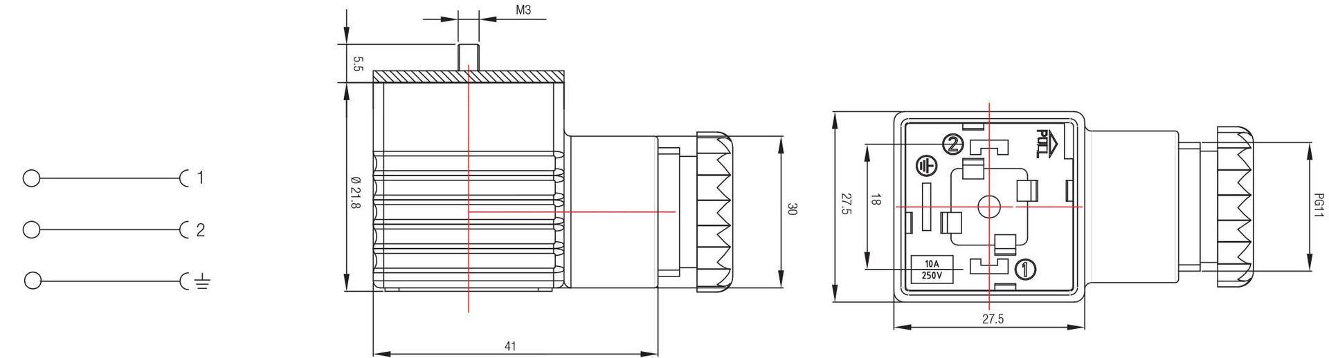 разъём по DIN 43650 тип A (18 мм) 3-пин