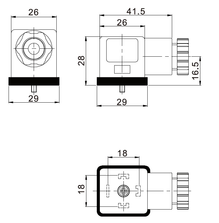 Стандарт: DIN 43650 (EN 175301-803) • Электрическое подключение: разъём по DIN 43650 тип A (18 мм) 3-пин • Рабочее напряжение: 12 ÷ 48 V DC • Цвет: коричневый полупрозрачный