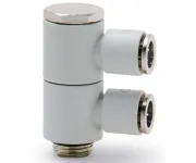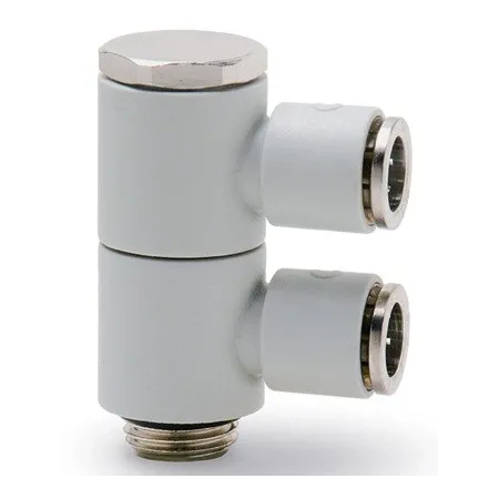 Форма фитинга: разветвитель с серьгой с нар. резьбой поворотный двойной • Подключение: G1/4-8 мм • Материал корпуса: полибутилентерефталат (PBT)